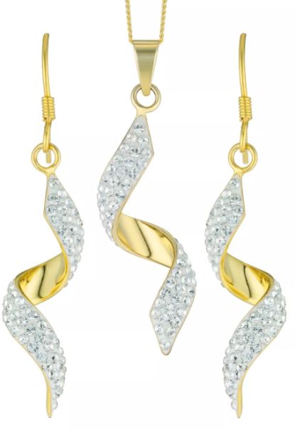 Evoke Sterling’n’Ice Sterling Silver Gold Plated Crystal Swirl Drop Earring and Pendant Set with 18″ curb Chain