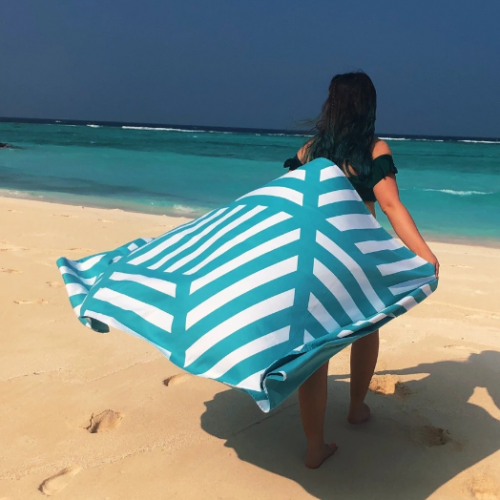 Designed in London our Extra-Large Geo Towels completely covers a sunbed. It’s super absorbent and folds up to the size of your paperback book. Sand and debris don’t stick meaning that pesky stuff stays where it belongs.