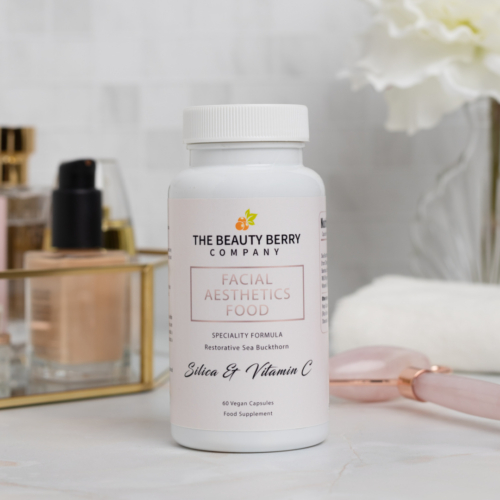 Facial bone loss starts from early twenties and contributes to a range of facial changes as you age, including hollow under-eye circles, flattened cheeks and hooded brows. Facial Aesthetics Food® is designed to target this, going beyond skin health, supporting your underlying facial structure too. When sea buckthorn is paired with silica and vitamin C, you have the Facial Aesthetics Food® formula, which contributes to normal collagen formation, normal bones and the protection of cells from oxidative stress.