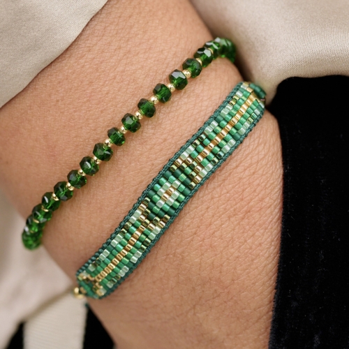 Embrace the serene beauty of Japanese Miyuki glass beads in Emerald Green Tones with our Thread-through Friendship Bracelet. Comfortable and effortlessly wearable, this bracelet combines style with ease, making it a perfect accessory for wearing daily to add a touch of tranquility to your look. Boho Betty items come beautifully packaged, the perfect gift for someone special or for treating youself!
