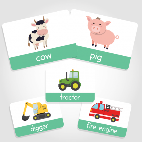 Our Farm Animal Flashcards and Transport Toddler Flashcards combine a toddlers fascination with both farm animals and transports. Explore the different sounds these objects make with your child as well as discussing the vibrant colours as they develop.