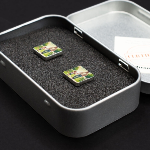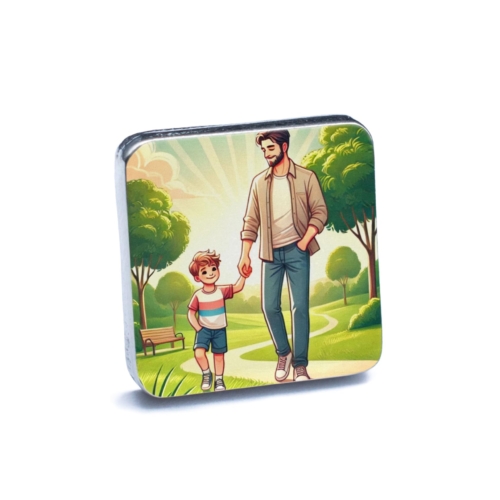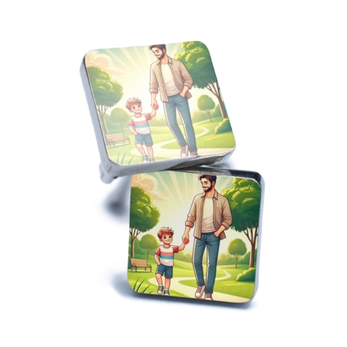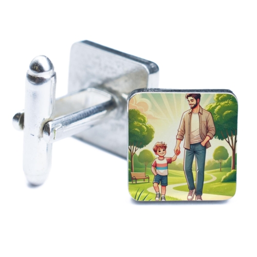 Father and Child Park Walk Cufflinks ? Heartwarming Family Design, Perfect Gift for Dads (cuff-ds24-parkdadrg)