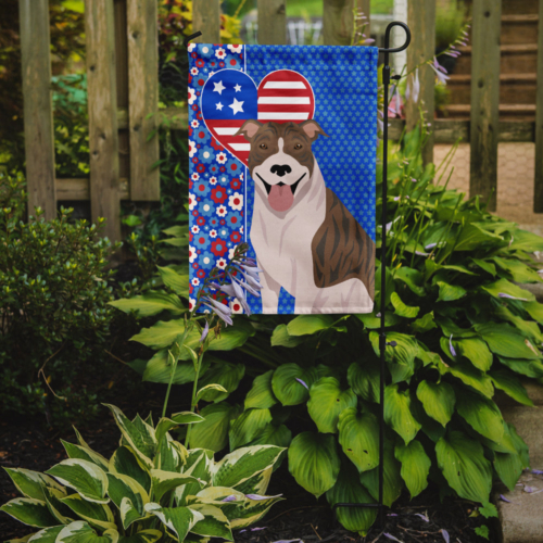 Garden Flag featuring breed specific Pit Bull Terrier artwork. This Garden Flag is from Caroline’s Treasures collection USA Love America. Enhance the beauty of your garden, patio, or yard with Caroline’s Treasures Decorative Garden Flag, proudly made in the USA. Crafted from two pieces of thick, double-sided polyester fabric, this 2-ply garden flag is designed to withstand various weather conditions, making it water-resistant and weatherproof. Featuring correctly readable words on both sides, this garden flag offers a delightful visual experience from any angle. With its heavier weight, it stands out among other garden flags, ensuring stability and durability even in wind, rain, and snow. Measuring approximately 11 1/4 inches by 15 1/2 inches, this flag allows you to personalize your outdoor decor. It comes with a 1 1/2-inch sleeve sewn in, allowing easy attachment to any standard garden flag stand or garden size porch hanger (sold separately). Make a statement in your outdoor space with Caroline’s Treasures Decorative Garden Flag, a vibrant and high-quality flag that adds color and personality to your surroundings. Proudly made in the USA, it’s a symbol of quality craftsmanship and attention to detail. This Garden Flag is from Caroline’s Treasures Dogs category of products.