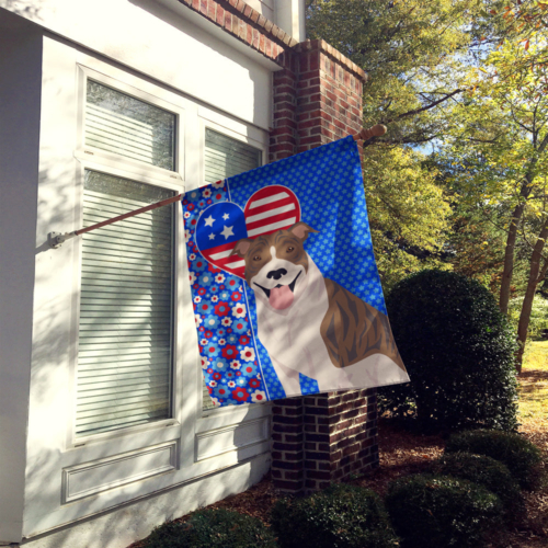 Fawn Brindle Pit Bull Terrier USA American House Flag