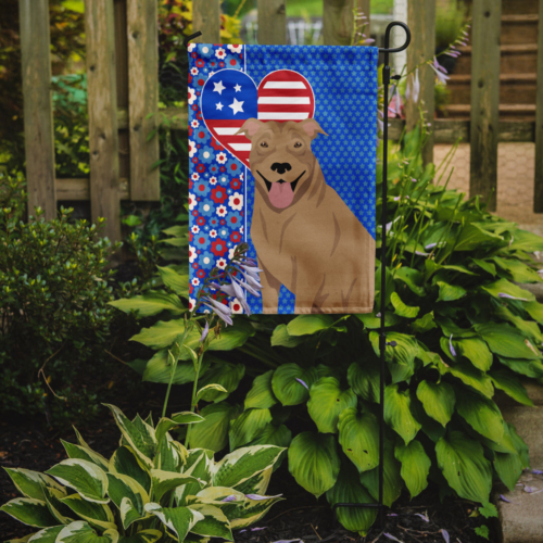 Garden Flag featuring breed specific Pit Bull Terrier artwork. This Garden Flag is from Caroline’s Treasures collection USA Love America. Enhance the beauty of your garden, patio, or yard with Caroline’s Treasures Decorative Garden Flag, proudly made in the USA. Crafted from two pieces of thick, double-sided polyester fabric, this 2-ply garden flag is designed to withstand various weather conditions, making it water-resistant and weatherproof. Featuring correctly readable words on both sides, this garden flag offers a delightful visual experience from any angle. With its heavier weight, it stands out among other garden flags, ensuring stability and durability even in wind, rain, and snow. Measuring approximately 11 1/4 inches by 15 1/2 inches, this flag allows you to personalize your outdoor decor. It comes with a 1 1/2-inch sleeve sewn in, allowing easy attachment to any standard garden flag stand or garden size porch hanger (sold separately). Make a statement in your outdoor space with Caroline’s Treasures Decorative Garden Flag, a vibrant and high-quality flag that adds color and personality to your surroundings. Proudly made in the USA, it’s a symbol of quality craftsmanship and attention to detail. This Garden Flag is from Caroline’s Treasures Dogs category of products.