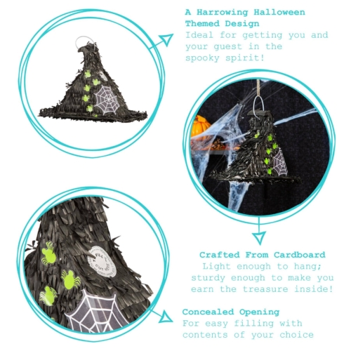 Creep it real and turn your harrowing Halloween party into a bona fide fiesta with this Halloween Witches Pinata from Fax Potato! A Harrowing Halloween Themed Design – Ideal for getting your and your guest in the spooky spirit! Crafted From Cardboard – Light enough to hang; sturdy enough to make you earn the treasure inside! Dimensions: Width: 44.5cm Depth: 25cm Height: 28cm 2 Year Warranty – With a dedicated Customer Service Team committed to providing peace of mind from our door to yours. Listing Contents – 1 Pinata
