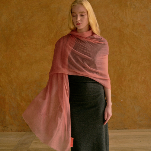 Lost Pattern’s “Featherlight” Oversized Cashmere Shawl is a stunning addition to any wardrobe, effortlessly enhancing your style with a touch of elegance and sophistication. This luxurious cashmere scarf wrap is crafted with meticulous attention to detail, providing a heavenly soft cashmere feel while ensuring warmth and comfort. Whether draped gracefully over your shoulders or wrapped snugly around your neck, this lightweight cashmere wrap is designed to elevate your look and add a hint of refined charm. With its delicate blush pink hue and premium cashmere quality, this fashionable cashmere shawl offers the ultimate in both breathable warmth and elegant design. Woven with 100% pure cashmere from Mongoliafor a featherlight texture Dimensions: 90.5″ x 39.4″ (approximately 230 cm x 100 cm) Breathable and cozy, perfect for layering Dry clean only At Lost Pattern, we take pride in our commitment to ethical and sustainable practices when it comes to sourcing premium cashmere. By working directly with our suppliers, we ensure the protection of natural resources, the well-being of cashmere goats as well as the working conditions & welfare of all farmworkers.