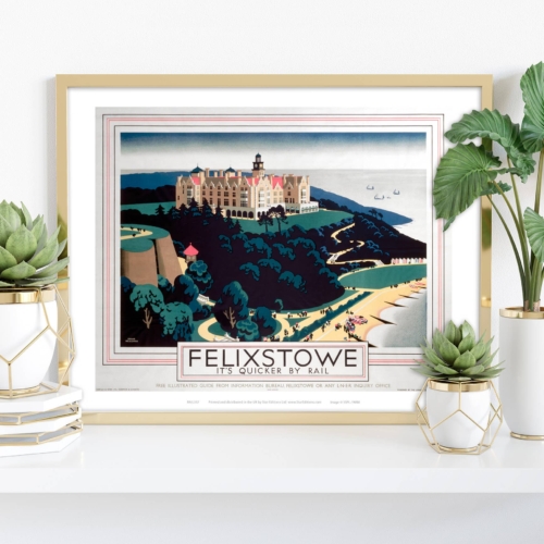 Premium Felixstowe, It’s Quicker By Rail art print measures 11×14 inches in size (28cm x 35.5cm).