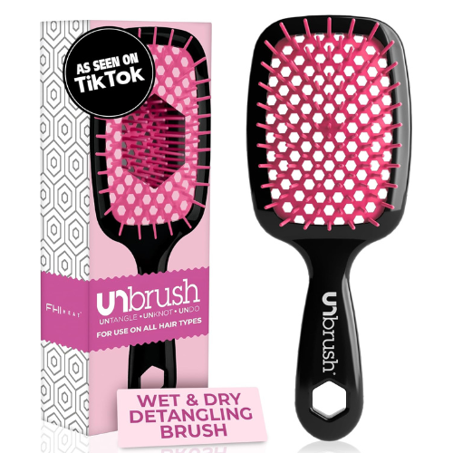FHI HEAT Unbrush Wet & Dry Vented Detangling Hair Brush, Pink