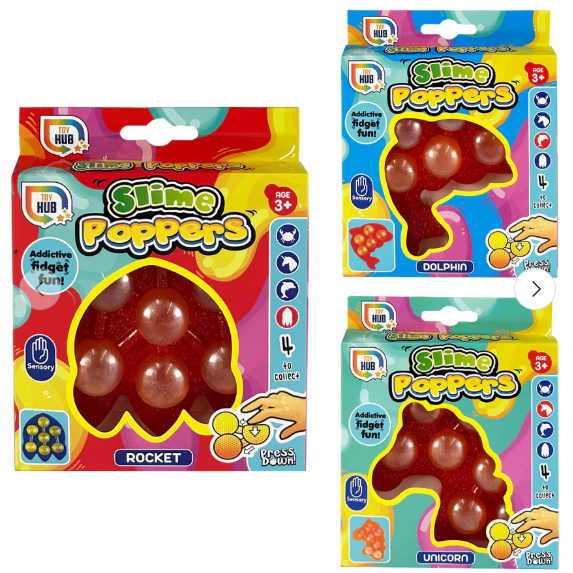 Experience the pop and sizzle of the Fidget Slime Poppers. This sensory toy combines the squish of slime with the satisfaction of bubble wrap. Press the bubbles to release a pop that’s both soothing and fun—a perfect stress reliever for all ages! Assorted One supplied