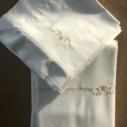 – 4 x oxford pillow cases with dusty gold embroidery detail [Single set comes with 2x pillow cases]