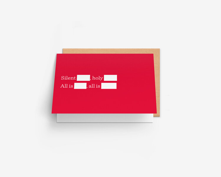 A set of 8 Christmas cards featuring Christmas carol lyrics that have been redacted. Fill in the blanks, or leave that to the person you’re sending to.