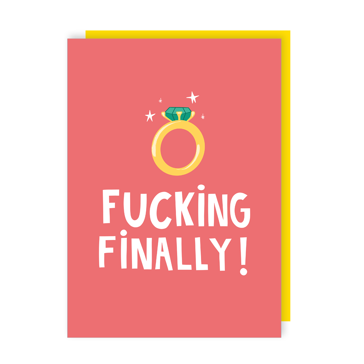 Has your bestie finally got engaged?! If so, it’s time to send them the biggest of congratulations, it’s been a long time coming. This funny celebration card featuring a big old engagement ring and the very fitting words ‘Fucking Finally’ gets the message across perfectly. It is the ideal humorous engagement card! We love it.