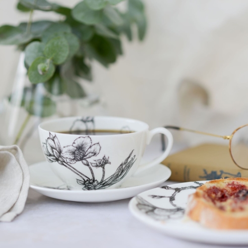 The Sarah Horne Botanicals British-made homeware and giftware collection is designed to contrast and compliment. Sarah’s signature black and white colour scheme offers endless possibilities; pair with block-colour accents for a contemporary pop, and/or achieve an eclectic yet elegant style by combining different floral designs in the same setting.