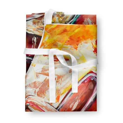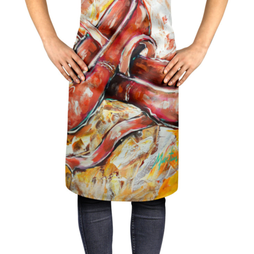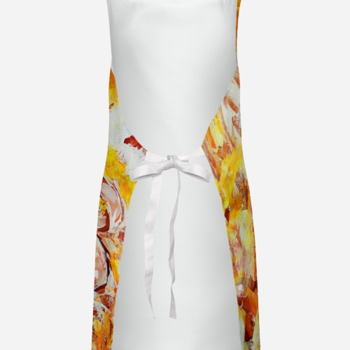 Elevate your cooking, baking, and grilling experiences with our versatile Kitchen or BBQ Apron. This Bib Style apron isn’t just limited to culinary activities – it also serves as an excellent baking apron, artist apron, server apron, gardening apron, or even a dog grooming apron. The apron showcases vibrant full-color artwork contributed by one of our talented artists, bringing a dash of style to your daily tasks. With dimensions of approximately 27″W x 30″H, it provides ample coverage to protect your clothing from spills and splashes. Our apron is meticulously crafted from 100% Ultra Spun Polyester, known for its durability and lightweight nature. The apron comes with white tie straps, ensuring a comfortable and adjustable fit for all. It’s a perfect choice for kitchen apron enthusiasts, whether you are a woman or a man. Designed for easy maintenance, this apron is fully machine washable. The quick-drying polyester material actively reduces staining, keeping your apron looking fresh and new for longer. Our beautifully designed apron isn’t just a functional kitchen accessory – it’s a fashion statement in the culinary world!
