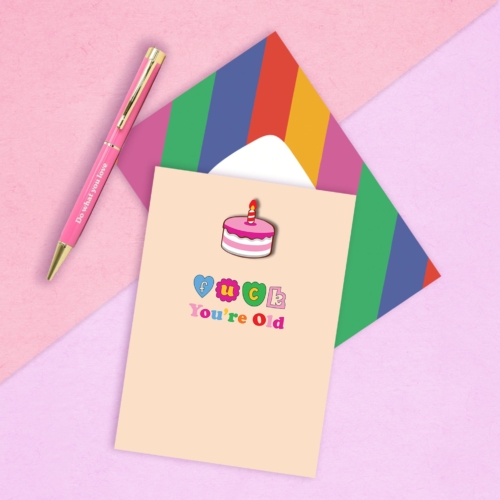 Add a bold and hilarious touch to any birthday with the ‘F**k You’re Old’ Greeting Card. This playful card is perfect for those who don’t shy away from a little cheeky humor to celebrate getting older. Featuring a striking design and an irreverent message, it’s sure to bring laughter and smiles to your friend or family member’s special day Card Info: RRP: £2.993D card, handmade in the UKComes with a matching printed rainbow envelopeBlank inside Dimensions: 114 mm x 162 mm