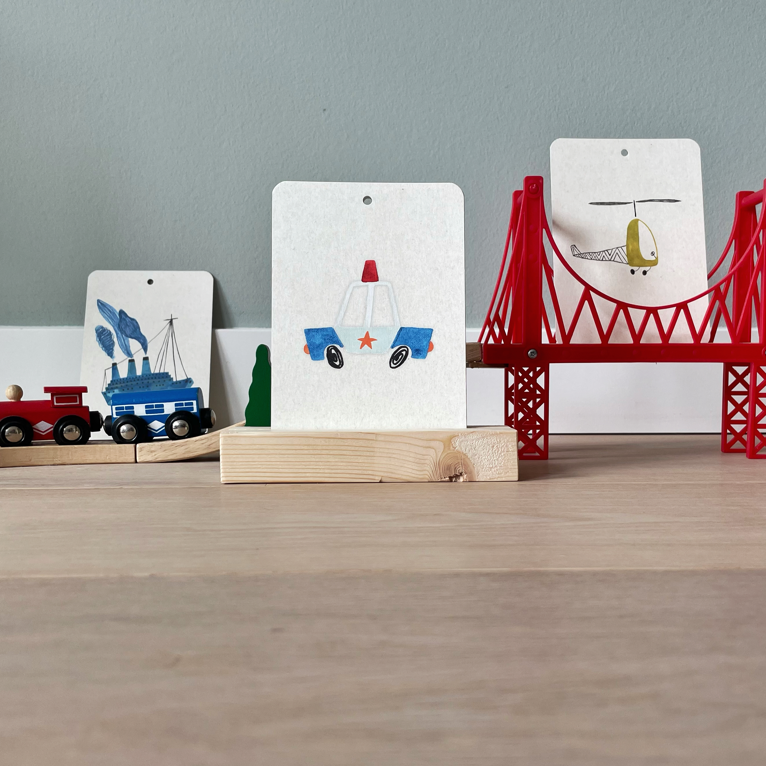 Each package includes three sets of vocabulary cards that align beautifully around a central theme and a gorgeous brass ring to keep them bundled between playtimes.