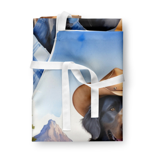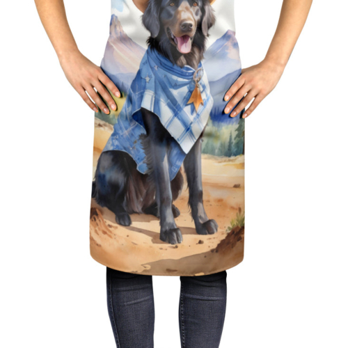 Apron featuring breed specific Flat-Coated Retriever artwork. Elevate your cooking, baking, and grilling experiences with our versatile Kitchen or BBQ Apron. This Bib Style apron isn’t just limited to culinary activities – it also serves as an excellent baking apron, artist apron, server apron, gardening apron, or even a dog grooming apron. The apron showcases vibrant full-color artwork contributed by one of our talented artists, bringing a dash of style to your daily tasks. With dimensions of approximately 27″W x 30″H, it provides ample coverage to protect your clothing from spills and splashes. Our apron is meticulously crafted from 100% Ultra Spun Polyester, known for its durability and lightweight nature. The apron comes with white tie straps, ensuring a comfortable and adjustable fit for all. It’s a perfect choice for kitchen apron enthusiasts, whether you are a woman or a man. Designed for easy maintenance, this apron is fully machine washable. The quick-drying polyester material actively reduces staining, keeping your apron looking fresh and new for longer. Our beautifully designed apron isn’t just a functional kitchen accessory – it’s a fashion statement in the culinary world!