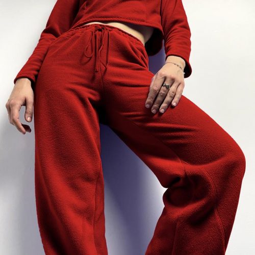 This set is ideal for off-duty days. Made of warm, soft micro fleece, the sweatshirt has a relaxed silhouette, while the matching trousers have an elasticated waistband and ankle. Now you can simply add sneakers to complete the look and feel cosy any time of year.