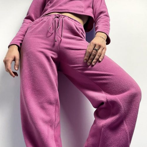 This set is ideal for off-duty days. Made of warm, soft micro fleece, the sweatshirt has a relaxed silhouette, while the matching trousers have an elasticated waistband and ankle. Now you can simply add sneakers to complete the look and feel cosy any time of year.