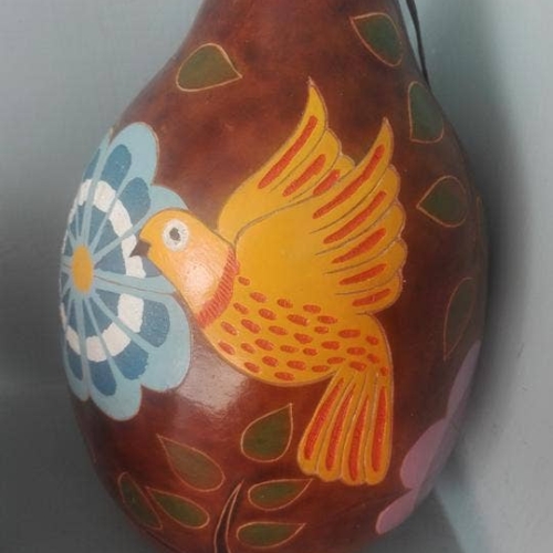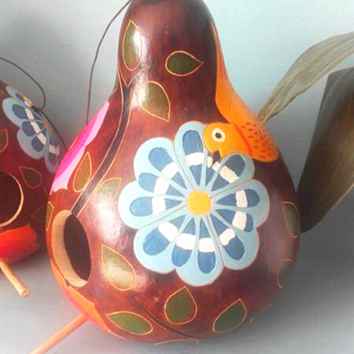 A natural Birdhouse Gourds, the perfect house for our feathered friends who built a nest. Traditional and modern techniques have been reflected in this birdhouse: pyrographic, painting and carving. Each birdhouse gourd starts with a natural gourd that was hand picked, dried, painted, carved and varnished to resist weather conditions. After a few seasons for our feathered friends, I will decompose naturally and return to Mother Earth. All our gourds are biodegradable, when you consider that it’s time for its second life, please bury in the ground (including the wood Shaquira), it will help as fertilizer and nutrients for the soil.Gourd’s artistic expression dates back over 3,000 years and carried down from generation to generation.Every birdhouse gourd is one of a kind due to its shape, size and handmade design.