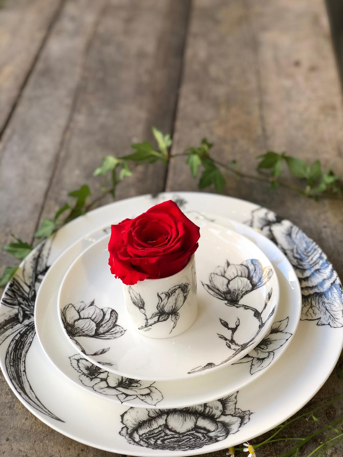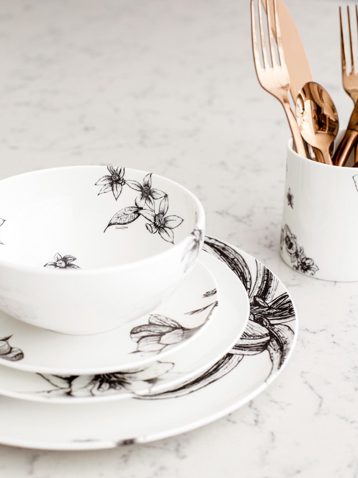 The Sarah Horne Botanicals British-made homeware and giftware collection is designed to contrast and compliment. Sarah’s signature black and white colour scheme offers endless possibilities; pair with block-colour accents for a contemporary pop, and/or achieve an eclectic yet elegant style by combining different floral designs in the same setting.