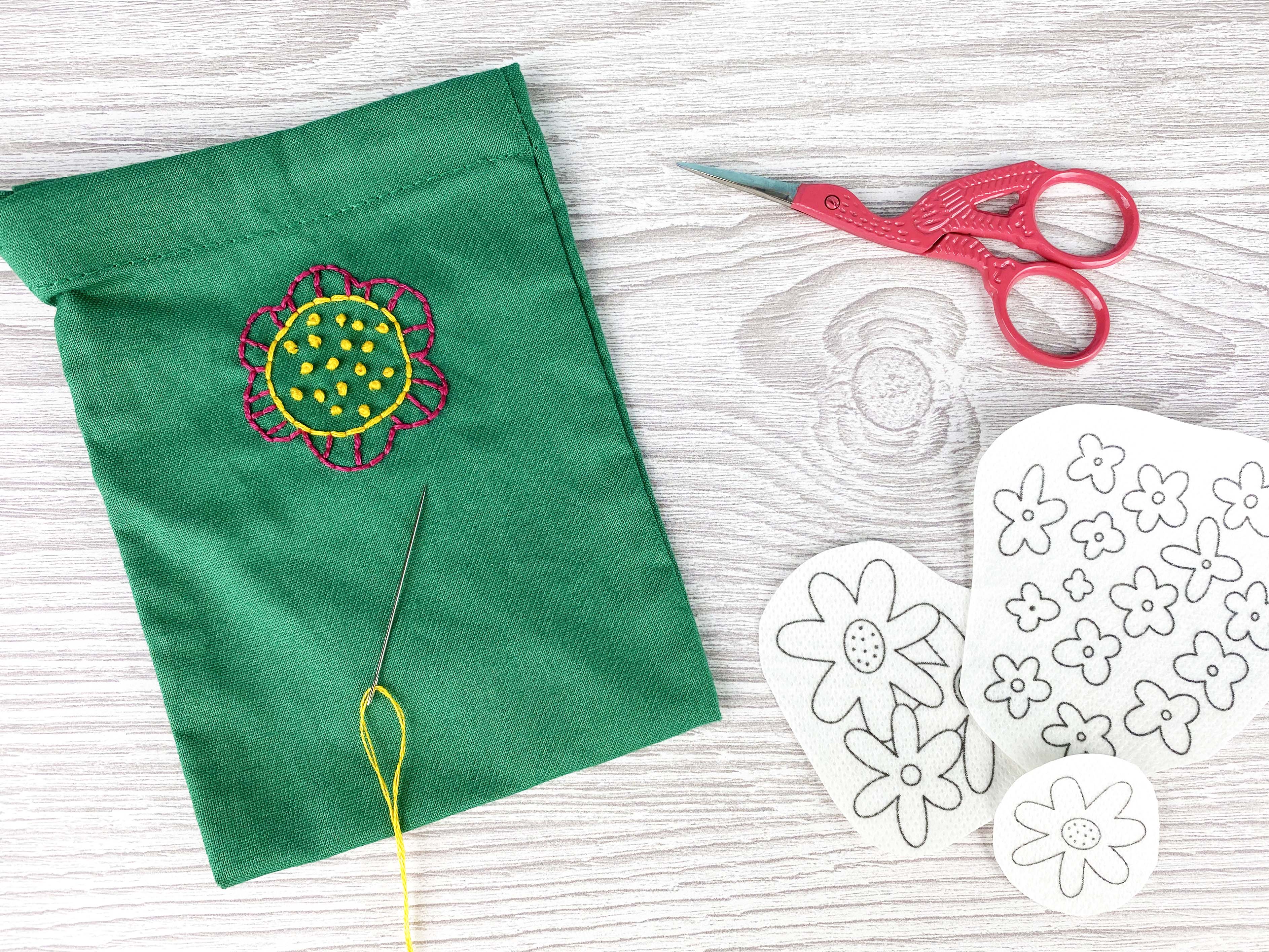 To use, simply cut out the design you want, peel off the backing and stick onto the fabric you’d like to embroider. Once you’ve finished stitching simply run the patch under tepid water and watch the paper dissolve before your eyes. Finally let your project air dry and voila!