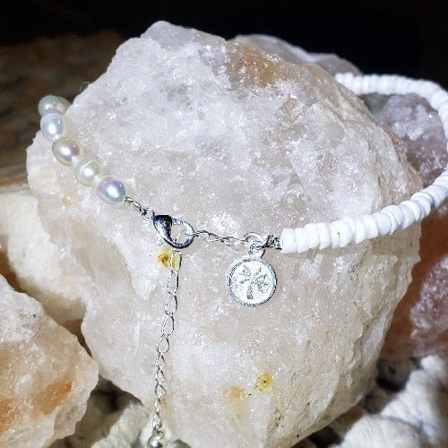 Flores puka and pearl anklet ankle bracelet – Luxury surf style jewelryWhat’s better than a bestselling anklet? An anklet that combines two of our customer favorites! Introducing the Flores puka shell and pearl anklet – the ultimate combination of surf style and elegant luxury for your ankle. This stunning piece brings together the best of both worlds, creating a fresh design that’s absolutely irresistible. Half puka shell and half pearl, this innovative design creates beautiful contrast and visual interest. The puka shells bring iconic surf culture charm with their smooth, white appearance and beachy vibes. Puka shells originated in Hawaii and have been beloved by beach lovers and surfers for decades, representing authentic coastal style. The freshwater pearls add elegant sophistication and timeless beauty, elevating the anklet from casual to luxurious. Pearls symbolize purity, wisdom, and beauty, bringing meaningful elegance to this surf-inspired piece. The combination of puka shells and pearls creates a perfect balance of laid-back beach style and refined elegance. This fresh design is guaranteed to add a bit of luxury to your surf style! The unique half-and-half design means you get the best of both materials in one beautiful anklet. The puka side creates casual, beachy vibes while the pearl side adds instant sophistication. Wear it to the beach for elevated coastal style, or pair it with summer dresses and sandals for elegant beachy chic. The versatility makes this anklet perfect for any occasion from beach days to dressy summer events. Handmade in Bali by skilled artisans, this anklet showcases quality craftsmanship and traditional jewelry-making techniques. Bali is renowned for its beautiful handmade jewelry and talented artisans who create pieces with care and attention to detail. By choosing this handmade anklet, you’re supporting artisan communities and traditional crafts. Each piece is unique and carries the spirit of Bali’s beautiful island culture. Comes in biodegradable packaging that’s eco-friendly and sustainable, showing care for the environment. The biodegradable packaging means you can feel good about your purchase knowing it won’t harm the planet. The eco-conscious packaging reflects the natural, earth-loving spirit of this beach anklet. The anklet measures approximately 9 1/2 to 10 inches with a 2 inch chain extender, providing adjustable sizing from 9.5 to 12 inches. The generous extender allows you to customize the fit to your exact ankle size, ensuring comfortable, secure wear. The adjustable design makes this anklet perfect for gifting or for wearing at different tightness levels. Perfect for beach days, summer style, or adding luxury surf vibes to your ankle year-round. This anklet is the kind of piece that becomes a favorite because it combines customer favorites in one fresh design. The Flores anklet pairs beautifully with other beach anklets for a stacked look, or wears stunning alone as a statement piece. Perfect for those who love puka shells and pearls, surf and luxury style, handmade Bali crafts, or anyone seeking a beautiful, eco-friendly anklet!Why You’ll Love It: Combines two customer favorites – puka shells and pearls Half puka shell, half pearl – fresh unique design Freshwater pearl beads – elegant luxury Puka shell beads – iconic surf style Handmade in Bali – quality artisan craftsmanship Biodegradable packaging – eco-friendly and sustainable Guaranteed to add luxury to your surf style Approx. 9 1/2-10 inches with 2 inch extender (fits 9.5-12 inches) Perfect For: Beach days and summer vacations Those who love puka shells and pearls Surf style with elegant luxury Handmade Bali and artisan crafts Eco-friendly and sustainable jewelry Stacking and layering anklets Adding fresh design to your ankle Specifications: Materials: Freshwater pearl beads, puka shell beads Design: Half puka shell, half pearl Length: Approx. 9 1/2-10 inches with 2 inch chain extender (fits 9.5-12 inches) Handmade in Bali Biodegradable packaging Weight: 0.2 oz Artisan quality craftsmanship Puka shells, freshwater pearls, Bali luxury surf anklet perfection!