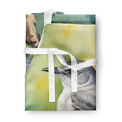 Apron featuring breed specific Northern Mockingbird artwork. Elevate your cooking, baking, and grilling experiences with our versatile Kitchen or BBQ Apron. This Bib Style apron isn’t just limited to culinary activities – it also serves as an excellent baking apron, artist apron, server apron, gardening apron, or even a dog grooming apron. The apron showcases vibrant full-color artwork contributed by one of our talented artists, bringing a dash of style to your daily tasks. With dimensions of approximately 27″W x 30″H, it provides ample coverage to protect your clothing from spills and splashes. Our apron is meticulously crafted from 100% Ultra Spun Polyester, known for its durability and lightweight nature. The apron comes with white tie straps, ensuring a comfortable and adjustable fit for all. It’s a perfect choice for kitchen apron enthusiasts, whether you are a woman or a man. Designed for easy maintenance, this apron is fully machine washable. The quick-drying polyester material actively reduces staining, keeping your apron looking fresh and new for longer. Our beautifully designed apron isn’t just a functional kitchen accessory – it’s a fashion statement in the culinary world!