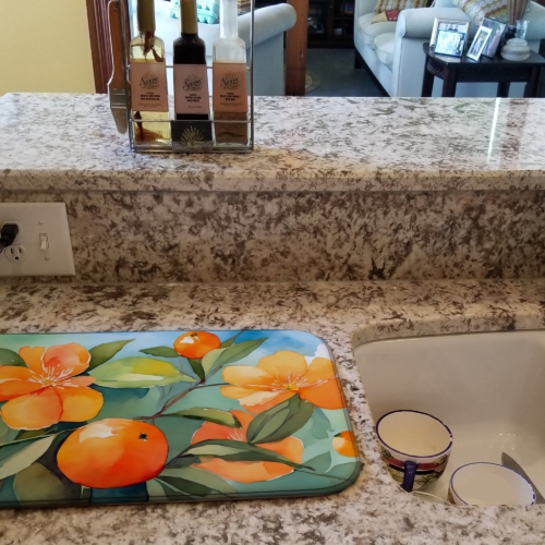 Dish Drying Mat featuring breed specific Florida Orange Blossom artwork. Say goodbye to messy countertops and soggy dish towels with our innovative dish drying mat. Our high-quality dish drying pad is designed to keep your countertops dry while offering a stylish and efficient solution. Whether you’re air drying dishes, glasses, stemware, silverware, pots, pans, bottles, or even fruits and vegetables, our dish mat is the perfect choice. The 14 inches x 22 inches size fits most counters and dish drying racks, and the non-slip design ensures stability. Made with water-absorbent polyester and a polyurethane foam insert, our dish drying mat is not only functional but also durable. It’s machine washable and printed in the USA for long-lasting use. The beautiful artwork adds flair to your kitchen decor, making it a perfect housewarming gift or present for any occasion. Upgrade your kitchen experience with our absorbent and versatile dish drying mat.