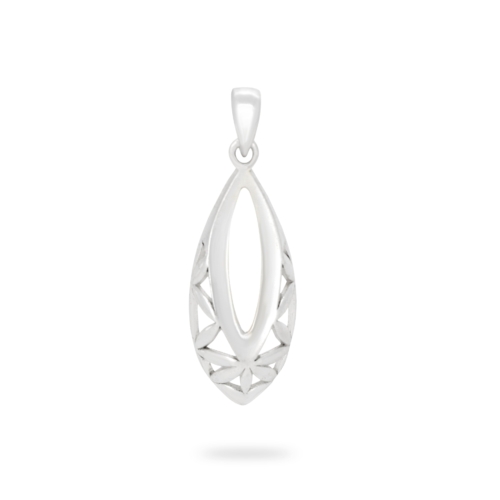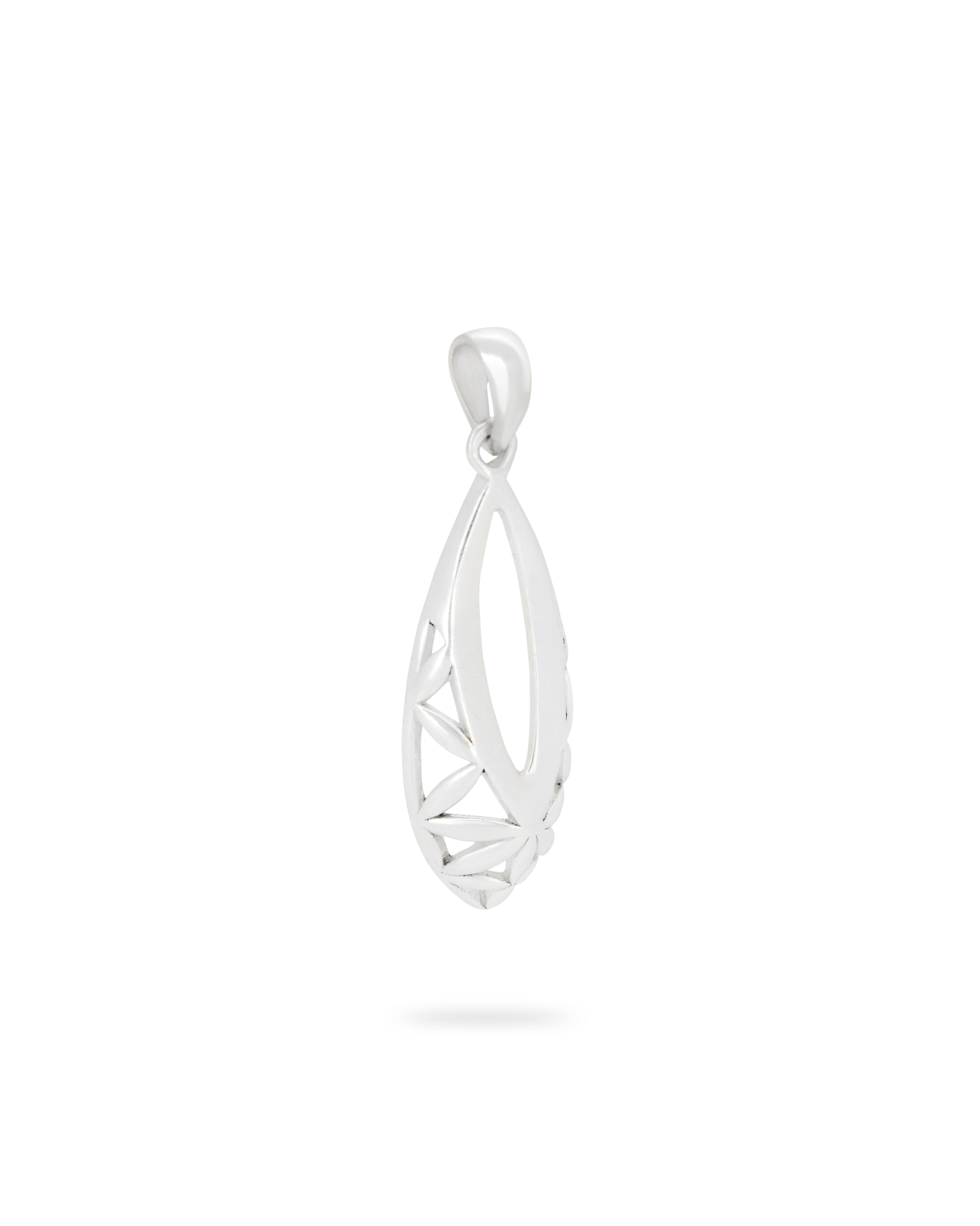 The Flower of Life is made up of overlapping circles. Representing interconnectedness, it is a symbol seen throughout history. The Flower’s pattern has been spotted in art, pottery, and architecture. The flower’s petals are elegantly captured in this elongated teardrop pendant. Made of sterling silver, the pendant measures 1.25 inches long. * Flower of Life teardrop pendant* Made of sterling silver with rhodium plating* Pendant measures 1.25″ long, 0.5″ wide