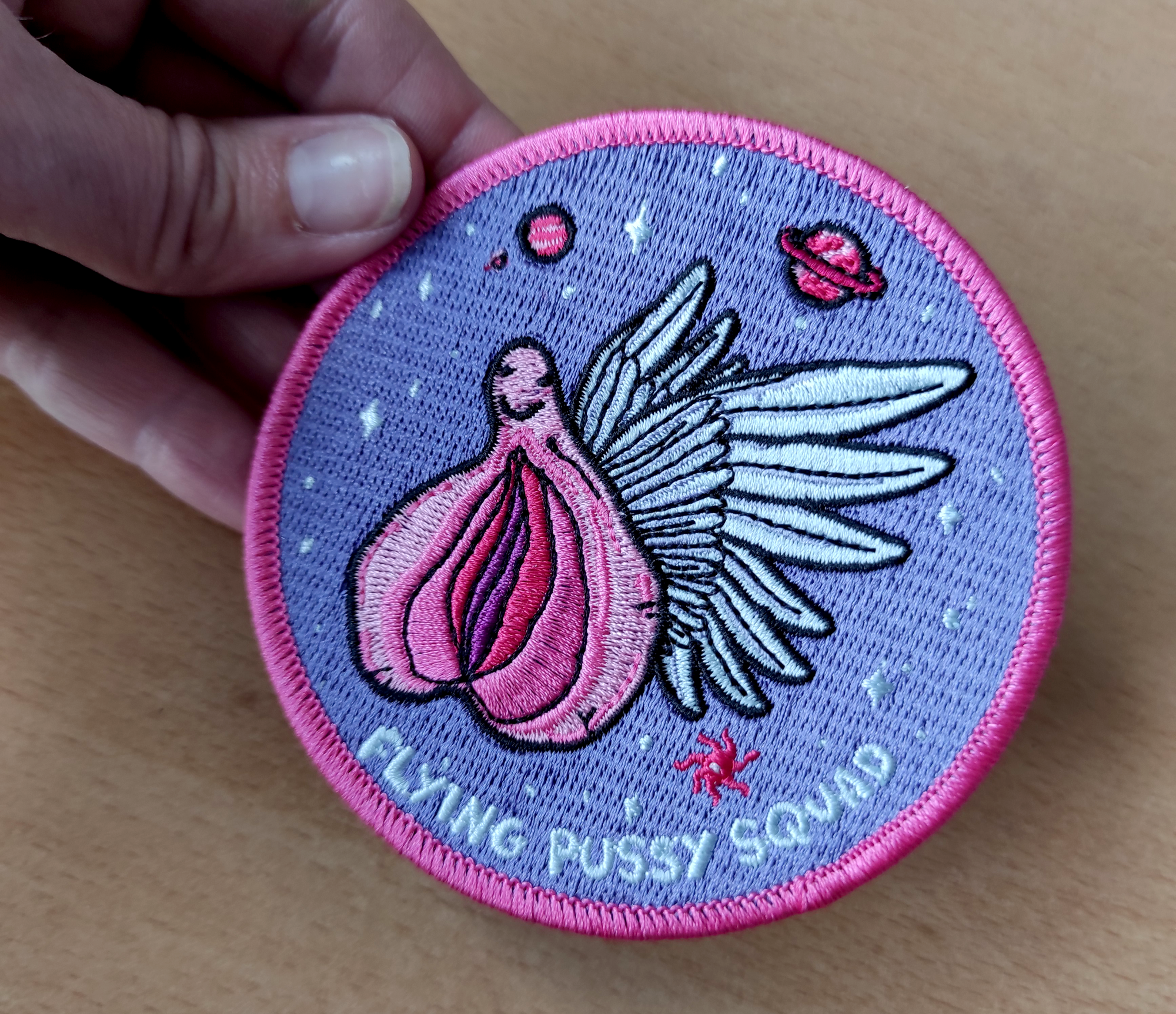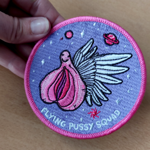 Get yourself and you loved ones this Flying Pussy Squad statement patch!It is time to stand up and celebrate our bodies, put a smile in your female friends, or just start a conversation about our bodies and our genres with these spacey psychedelic vaginas!