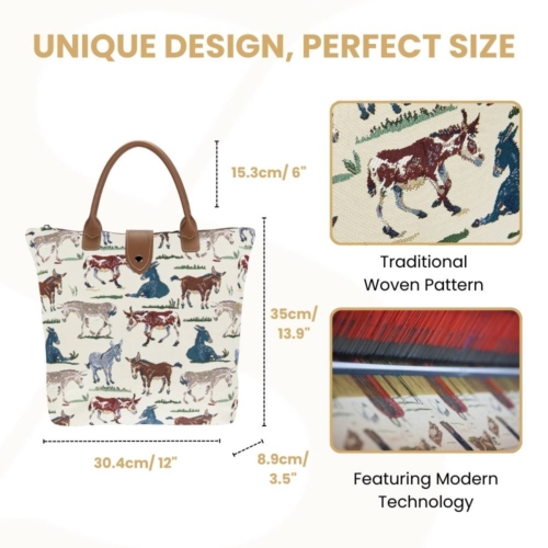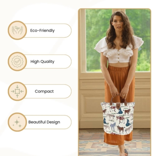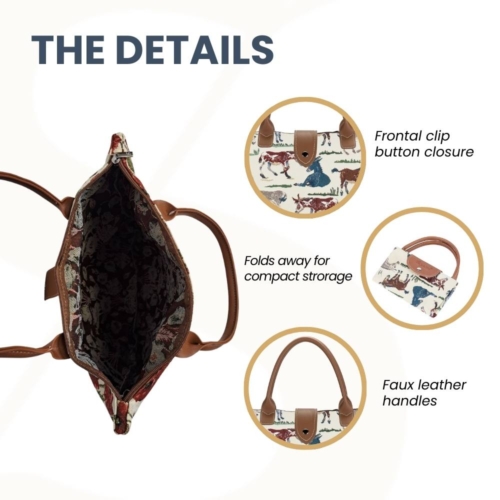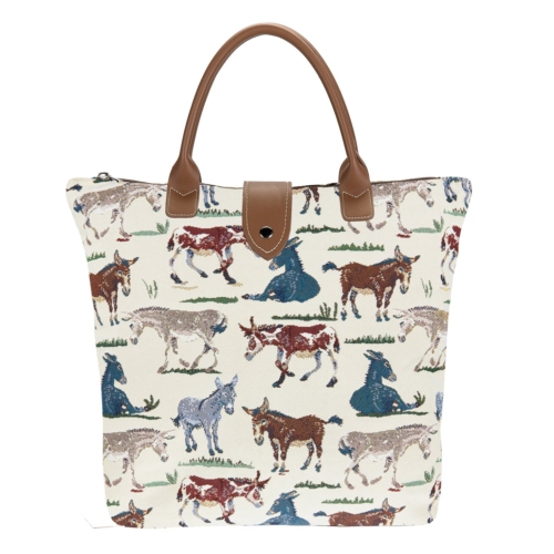 Compact and eco-friendly portable shopping purse. This tapestry collapsible grocery clutch bag piece opens up to provide ample space for your shopping trips and folds away for easy storage in your handbag.
