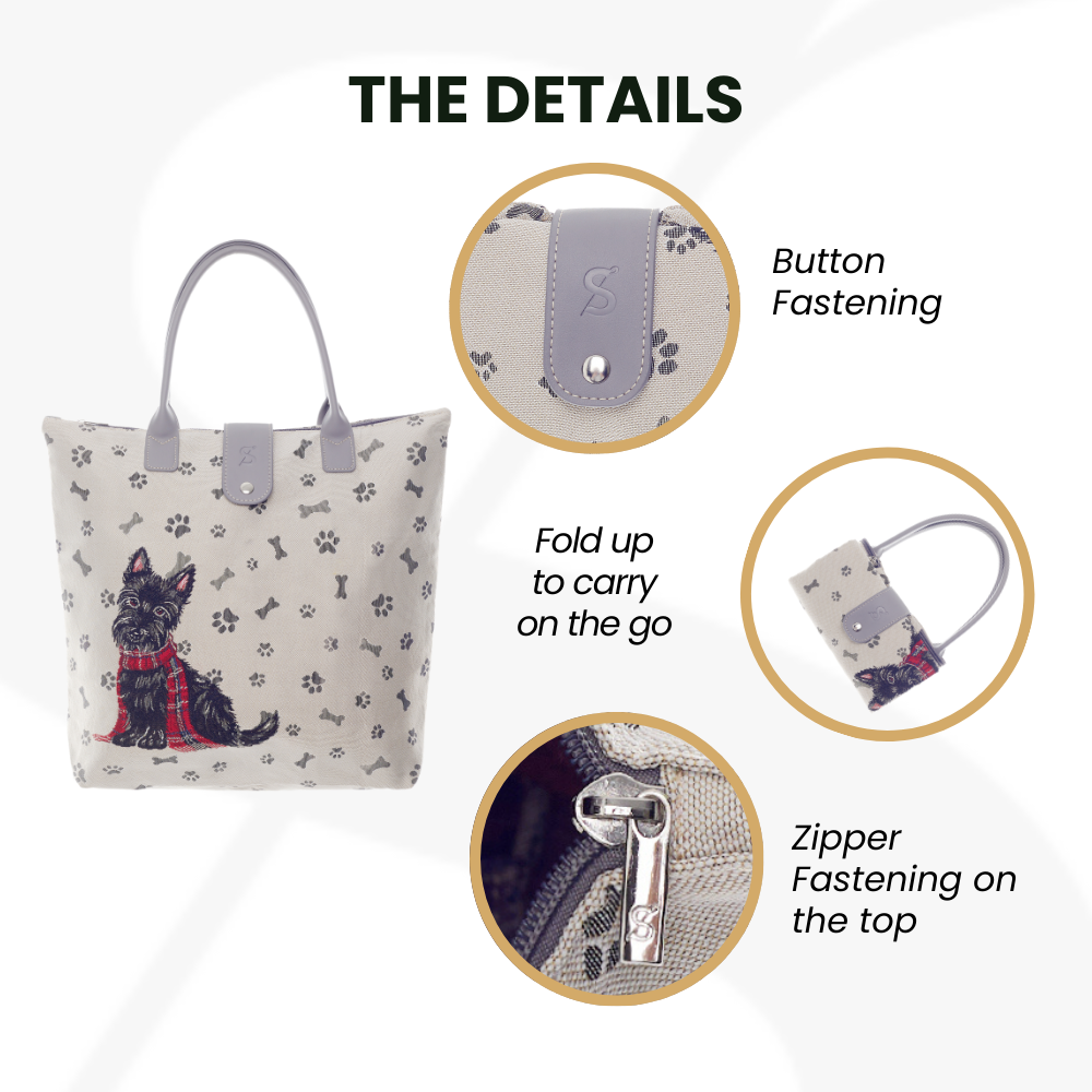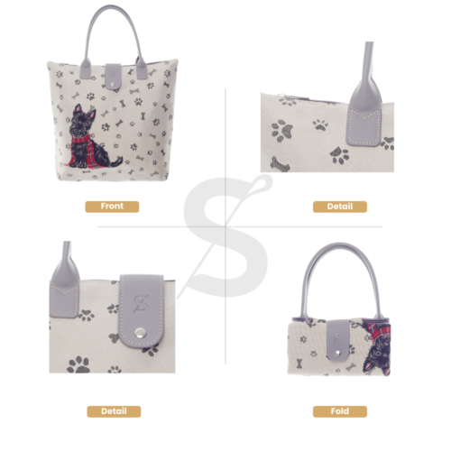 Compact and eco-friendly portable shopping purse. This tapestry collapsible grocery clutch bag piece opens up to provide ample space for your shopping trips and folds away for easy storage in your handbag.