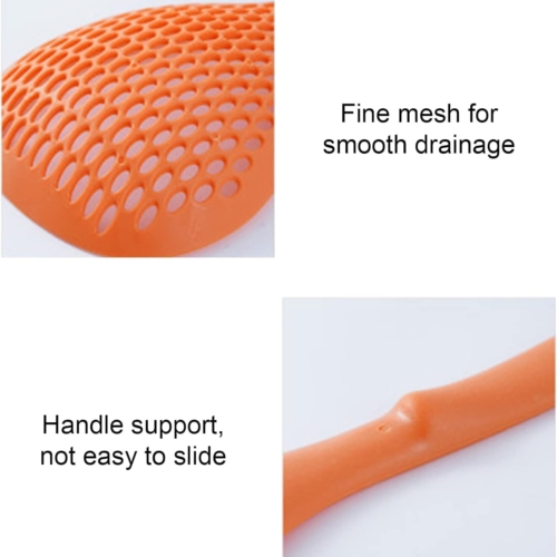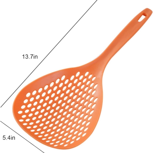 High-quality Materials: Made of thick and durable heat resistant nylon, this professional scoop strainer works for both hot foods and cold foods, even fried foods. Use it instead of your kitchen colander to strain pasta, vegetables, roasted or boiled potatoes, and more.Perfect size:Larger than a slotted spoon, this strainer skimmer saves you time and more importantly keeps you safe. Long handle protects your hands from splashes. Will not transfer heat like metal scoops. Mesh holes are the perfect size to enable quick draining and hold on to the food.Save time on cooking and cleanup – Save a step! Just scoop your food out of the pot or frying into your serving bowl. No need to pour it into a colander and then a serving containing. Cleanup is a breeze. Just put it in the dishwasher or quickly wash up by hand.Safer than a regular colander – Lifting a pouring a large pot full of boiling water and pasta is dangerous. Keep the heavy pot on a solid surface and use our scoop colander to safely serve the hottest foods. You can now safely lower eggs into boiling water. Keep your family safe!Satisfactory Service: customer satisfaction is our top priority. If you have any questions, please contact us and we will provide you with satisfactory solutions. There’s nothing to worry about