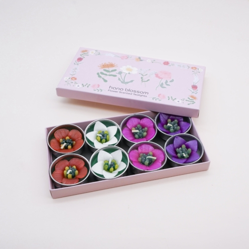 It is a love at first sight for these 4 sweet garden flowers. The set comes in Campanula, Clementis, Escallonia in 4 assorted colours. Scented with Neroli essential oil a fresh, honeyed and relaxing. The flower tealights can be used with any standard tealight holders. 100% Handmade, vegan, cruelty free and fairly trade