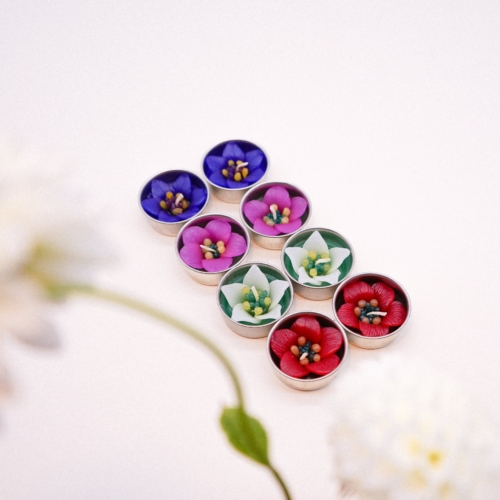 It is a love at first sight for these 4 sweet garden flowers. The set comes in Campanula, Clementis, Escallonia in 4 assorted colours. Scented with Neroli essential oil a fresh, honeyed and relaxing. The flower tealights can be used with any standard tealight holders. 100% Handmade, vegan, cruelty free and fairly trade