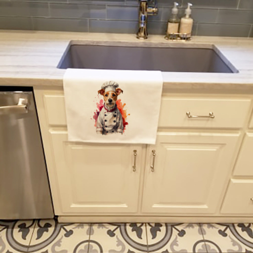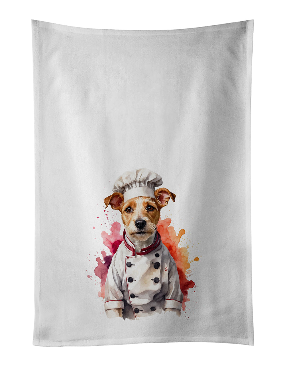 Kitchen Towel Set of 2 featuring breed specific Fox Terrier artwork. Spruce up your kitchen decor with Caroline’s Treasures Decorative White Kitchen Towel Set. This set of two dish towels showcases beautiful artwork from one of our talented artists, making them both practical and visually appealing. These towels are crafted from 100% cotton, offering excellent absorbency and durability, making them ideal for any kitchen task. Each white towel measures 19 inches by 28 inches, providing ample coverage for drying dishes or wiping up spills. The standout feature of these towels is the full-color artwork design printed on each one. They can serve as a vibrant accent in your kitchen, turning a functional item into a delightful piece of decor. When it comes to care, these towels are machine washable in cold water and can be dried on low heat. Remember to always use a pressing cloth when pressing the design, and avoid using bleach on the decorated towel. The Decorative White Kitchen Towel Set makes a great gift or a stylish addition to your own kitchen.