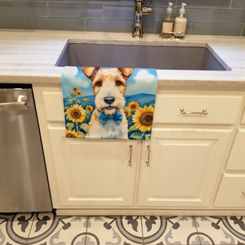 Fox Terrier in Sunflowers Kitchen Towel