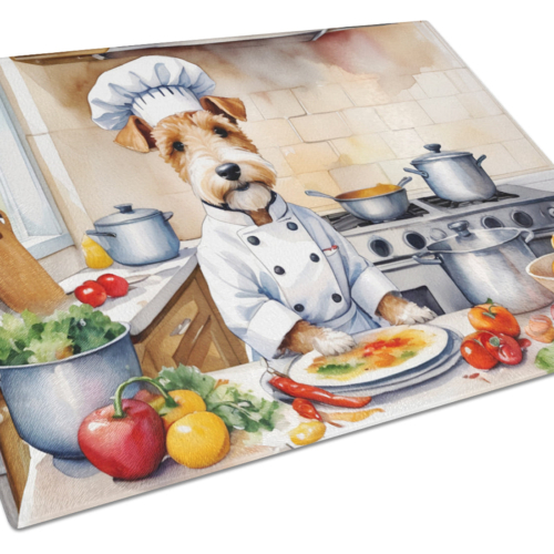 Glass Cutting Board featuring breed specific Fox Terrier artwork. Introduce your kitchen to the vibrant, large Decorative Glass Cutting Board from Caroline’s Treasures. Crafted from resilient tempered glass, this board is not only a utilitarian necessity but also a colorful art piece. With its generous dimensions of 15 inches in height and 12 inches in length, it offers ample space for all your cutting needs. Every piece showcases captivating artwork from distinguished artists, bringing an aesthetic edge to your kitchen. Beyond its attractive design, this cutting board ensures your countertop stays pristine and unscathed, owing to its heat-resistant properties. Engineered with user convenience in mind, it features non-skid feet for stability, and rounded corners for additional safety. Its robust construction renders it virtually unbreakable, guaranteeing longevity. The board comes with protective feet bumpers, maintaining its position during use. This product is recommended to be hand washed only. Proudly printed and assembled in the United States, this cutting board exemplifies superior craftsmanship. With Caroline’s Treasures’ Decorative Glass Cutting Board, you’re investing in a blend of functionality and artistic flair.