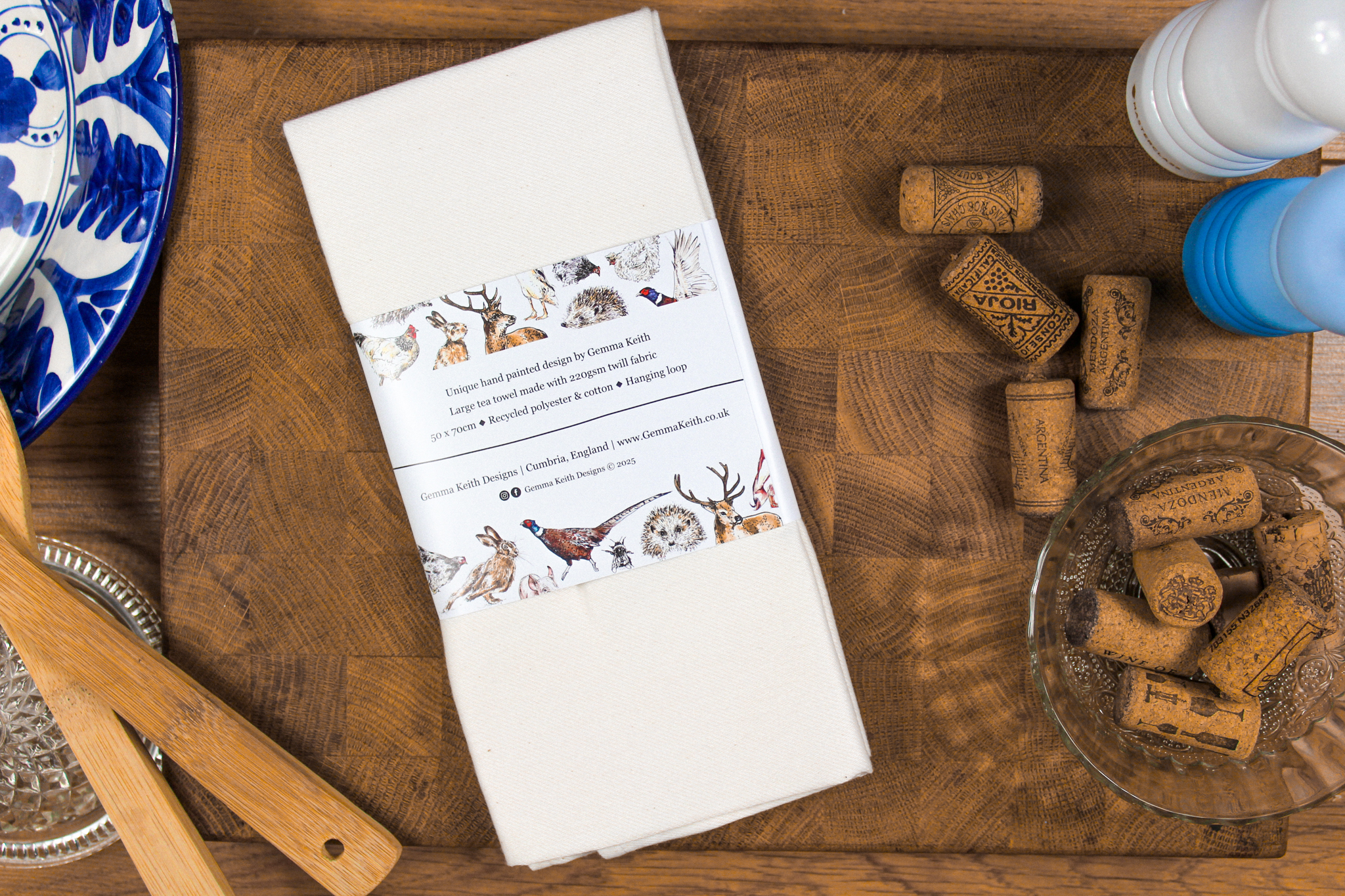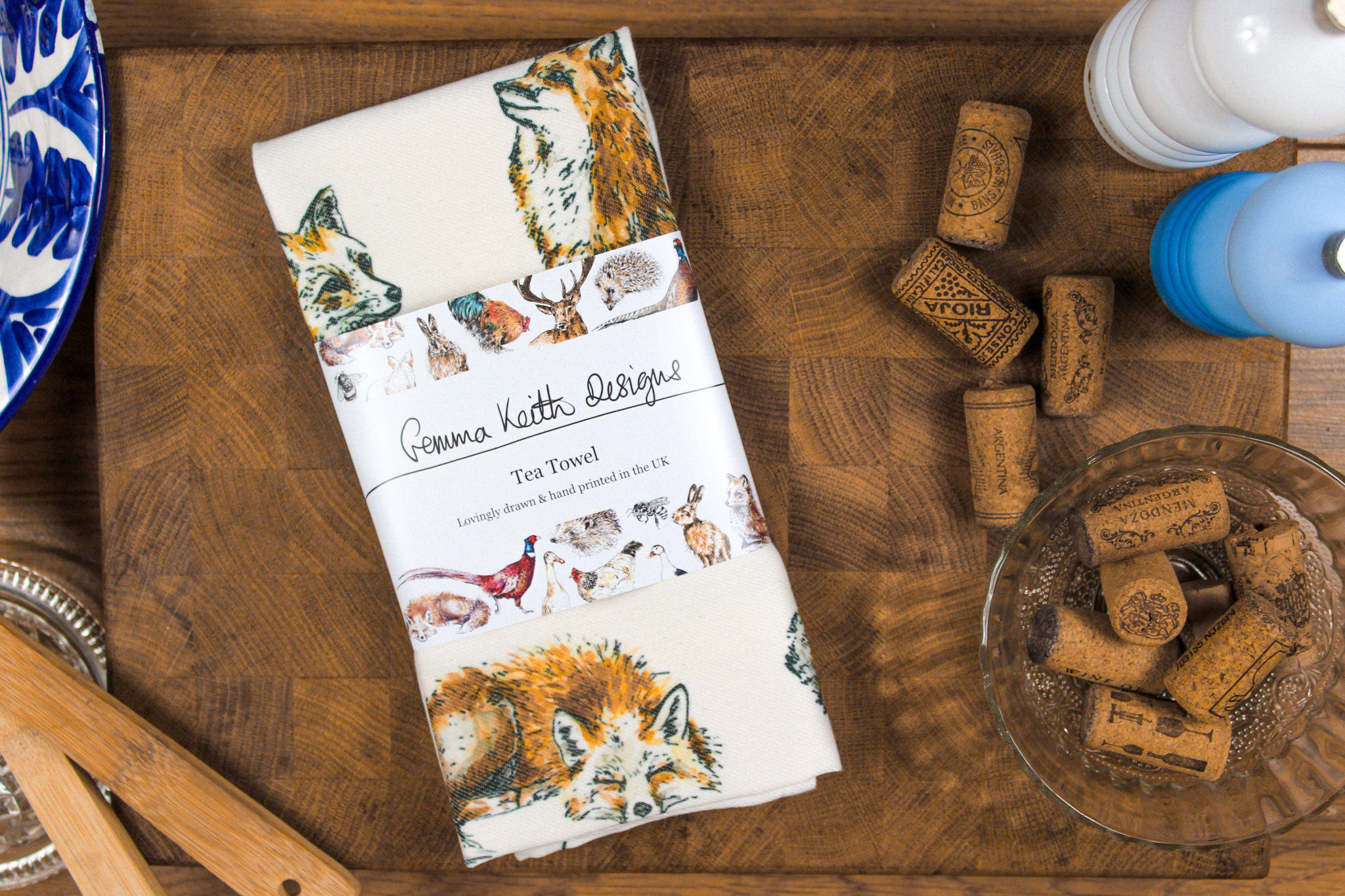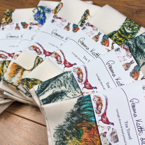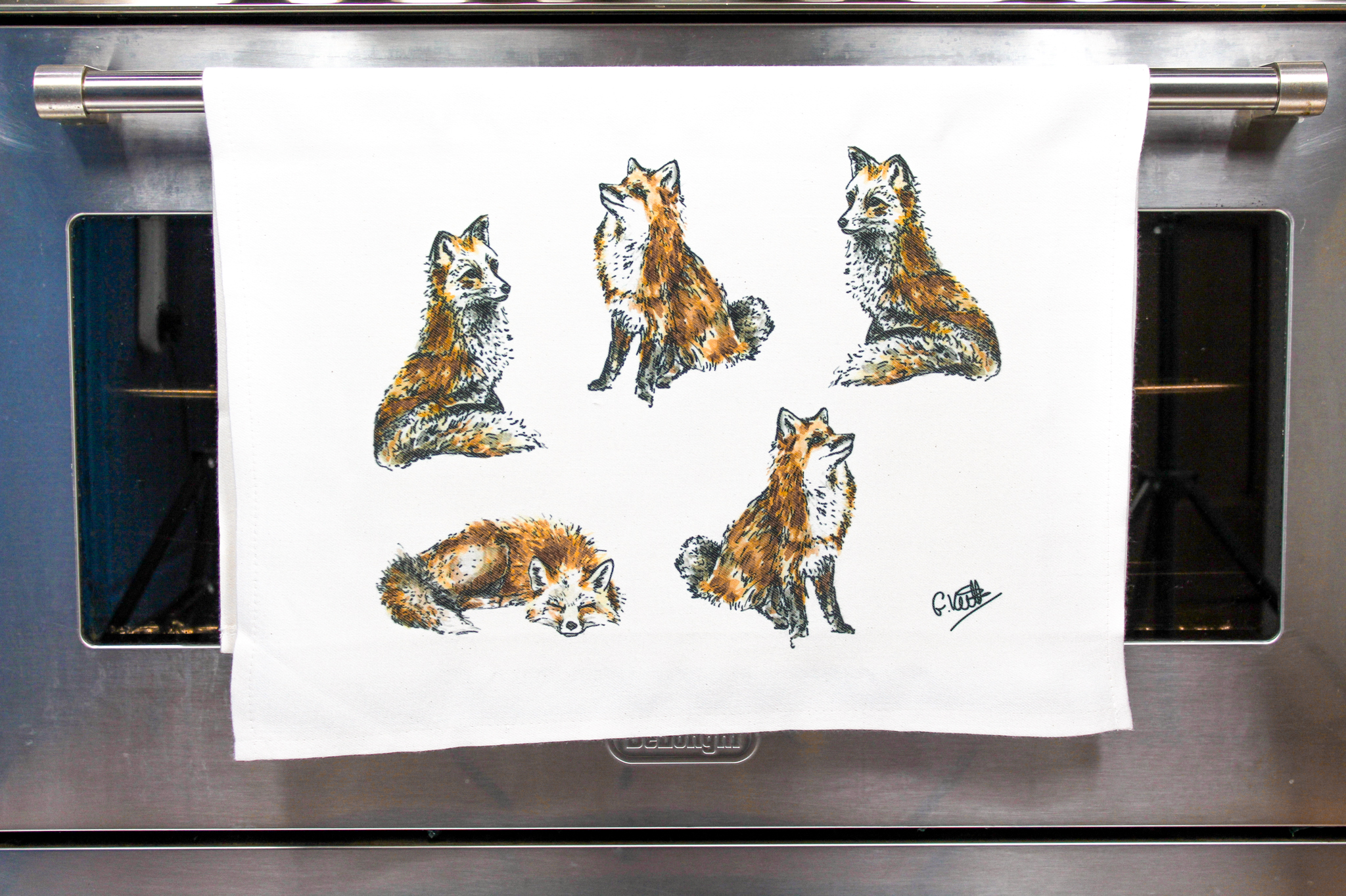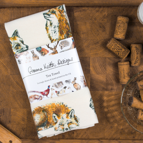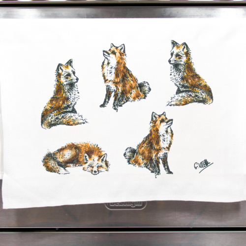 Foxes Hand Printed Tea Towel