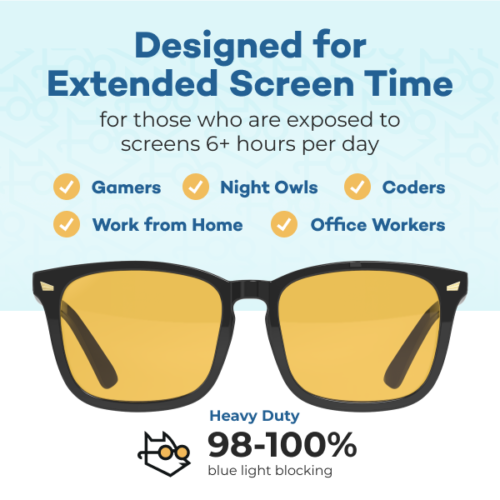 Blue Light Blocking Computer Screen Glasses – Foxmans Computer Glasses come with blue-light filtering lens technology, which prevents High Energy Visible (HEV) light emitted from all digital screens, from affecting your sleep patterns (circadian rhythms) and eye health (macular degeneration).