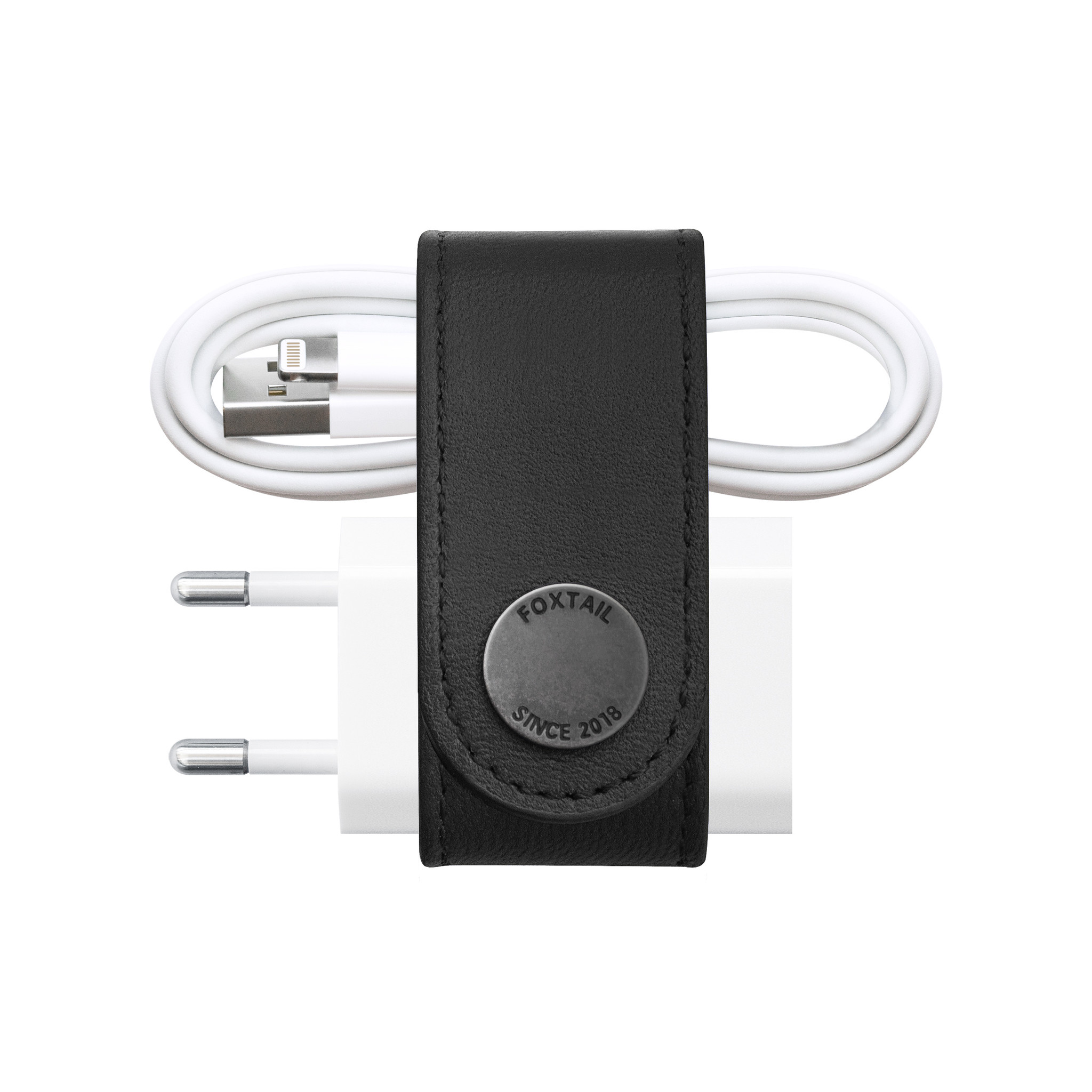 Foxtail consists of two parts. The “Loop” that is placed around the cable and neatly organizes it and the “Tail” that is placed around the adapter and holds it together with the cable. Together they form the Foxtail.
