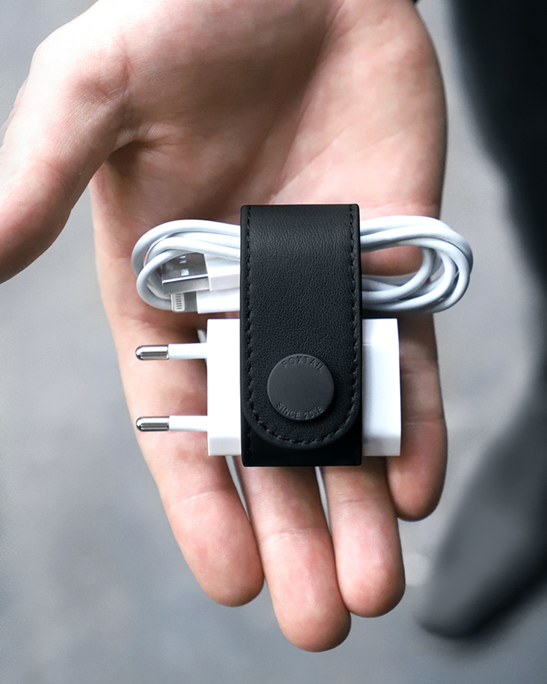 Foxtail is the solution for Apple iPhone users to finally store their cable and adapter in a sustainable, neat and stylish way. Enjoy the strong Danish design and quality every day. No more tangled wires, no more annoyances, but an elegant companion that you love to take with you everywhere you go.