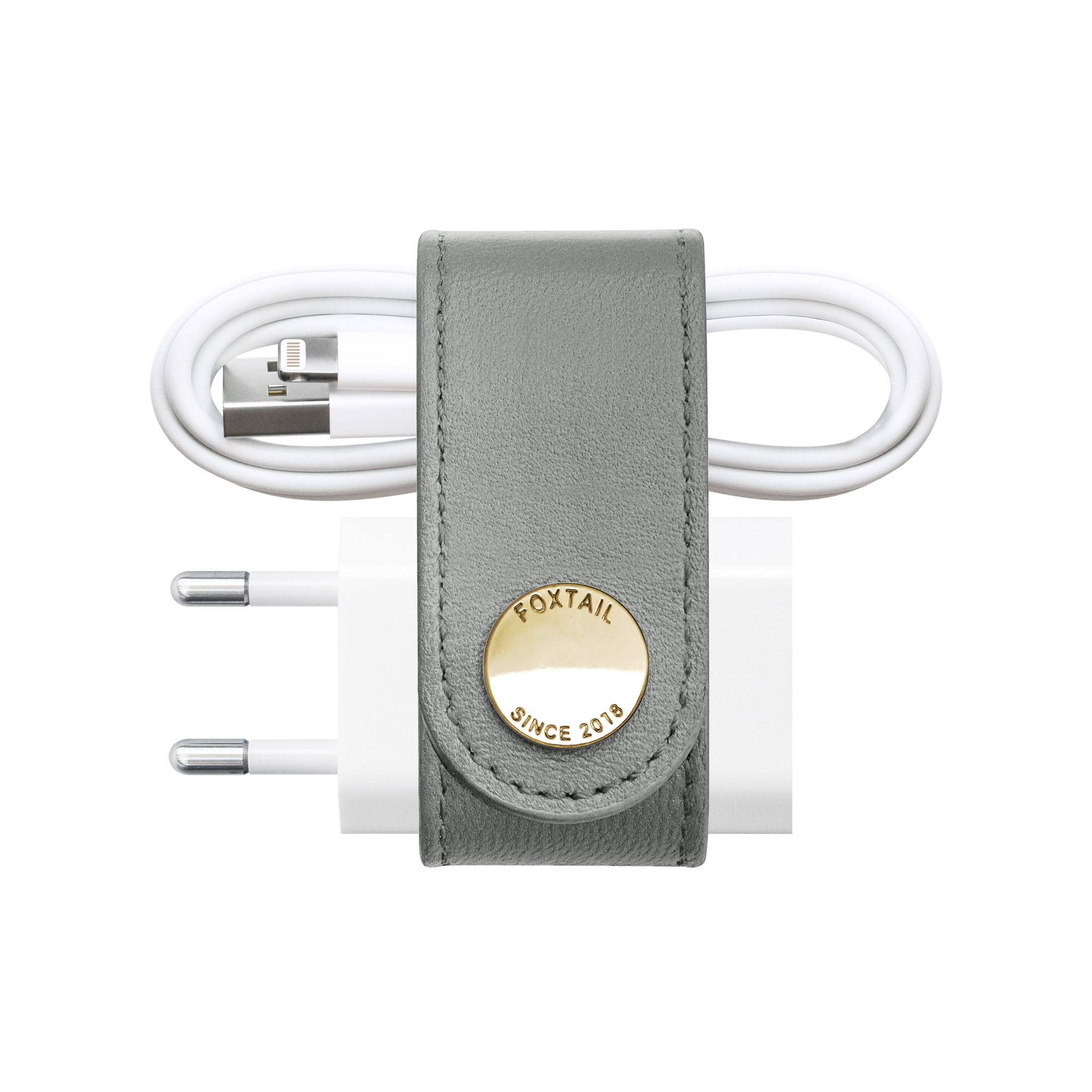 Foxtail consists of two parts. The “Loop” that is placed around the cable and neatly organizes it and the “Tail” that is placed around the adapter and holds it together with the cable. Together they form the Foxtail.