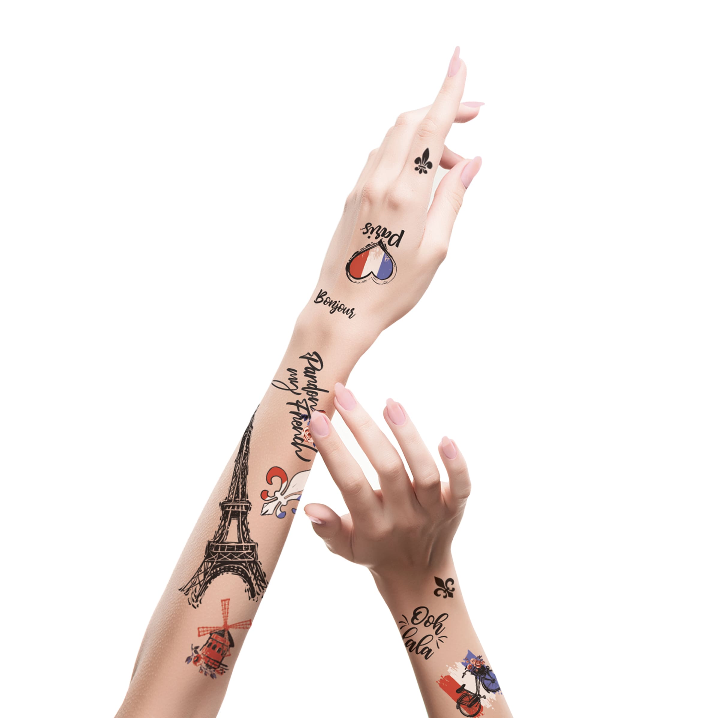 Oh-la-la! Going to Paris? Or planning a wine and french fries pyjama party? Our France temporary tattoos mix matches both occasions.
