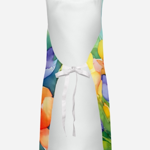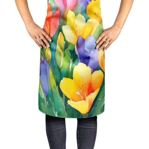 Apron featuring breed specific Freesias artwork. Elevate your cooking, baking, and grilling experiences with our versatile Kitchen or BBQ Apron. This Bib Style apron isn’t just limited to culinary activities – it also serves as an excellent baking apron, artist apron, server apron, gardening apron, or even a dog grooming apron. The apron showcases vibrant full-color artwork contributed by one of our talented artists, bringing a dash of style to your daily tasks. With dimensions of approximately 27″W x 30″H, it provides ample coverage to protect your clothing from spills and splashes. Our apron is meticulously crafted from 100% Ultra Spun Polyester, known for its durability and lightweight nature. The apron comes with white tie straps, ensuring a comfortable and adjustable fit for all. It’s a perfect choice for kitchen apron enthusiasts, whether you are a woman or a man. Designed for easy maintenance, this apron is fully machine washable. The quick-drying polyester material actively reduces staining, keeping your apron looking fresh and new for longer. Our beautifully designed apron isn’t just a functional kitchen accessory – it’s a fashion statement in the culinary world!