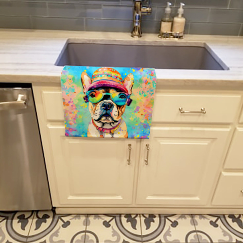 Kitchen Towel featuring breed specific French Bulldog artwork. Experience the perfect blend of aesthetic appeal and functional excellence with our Plush Velour Kitchen Towels. These are not your ordinary decorative kitchen towels that gather dust. Instead, they are designed to be as practical as they are stylish. The front layer of our towel is constructed from a minky plush polyester, known for its durability and color retention. Unlike conventional kitchen towels, the artwork on our towels is dyed directly into the fabric, ensuring vibrant colors that last. Polish your glassware to a brilliant sparkle using the plush front side of the towel. Flip to the back, crafted from 100% cotton terry loop, to exploit its exceptional absorbency for drying dishes or wiping down counters. Our kitchen towels redefine the concept of functional art, offering lasting quality that maintains the towel’s shape over time. Measuring 15 inches by 25 inches and weighing 2.3 lbs per dozen, these towels deliver an overwhelming sensory experience with their soft, plush, and smooth texture. The edges are meticulously finished with binding, enhancing their durability and visual appeal. For your convenience, these towels are machine washable and can be dried on low heat. After the first wash, the top fabric becomes even softer and fluffier, eliminating the need for ironing. Treat your kitchen to the luxury and functionality it deserves with our plush velour kitchen towels.