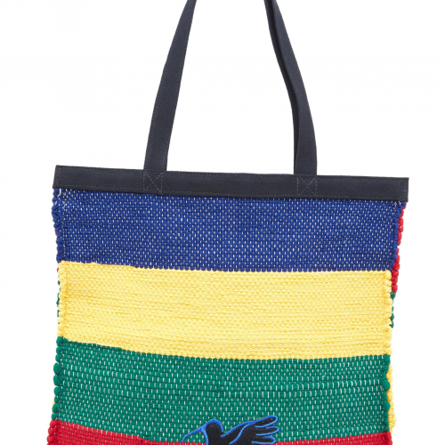 A little different to other bags, this multicoloured design shopper bag is giving fabric off-cuts, from the cutting room, the life they always dreamed of. A perfect tote bag made with recycled woven fabric and plastic bottles to make up the details.