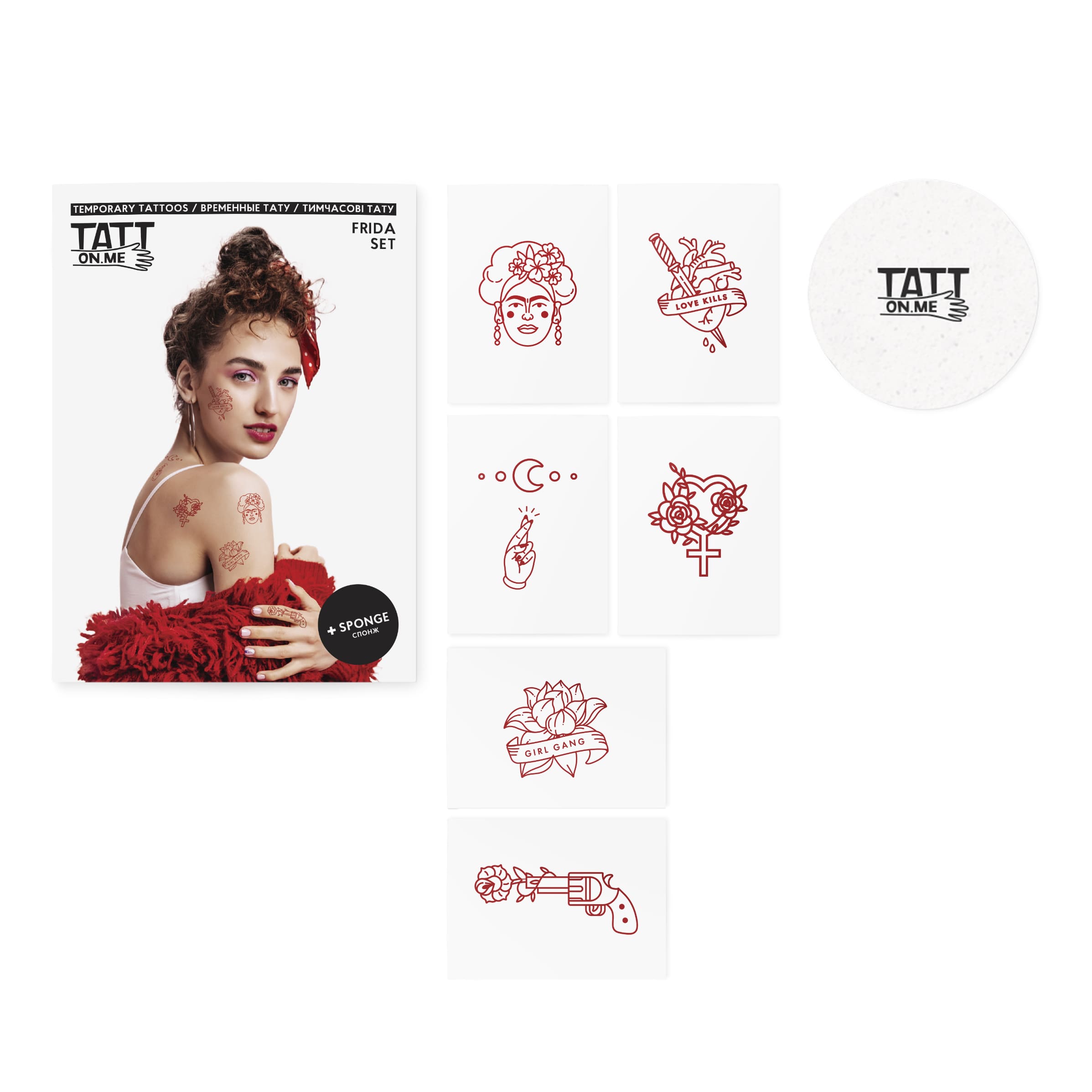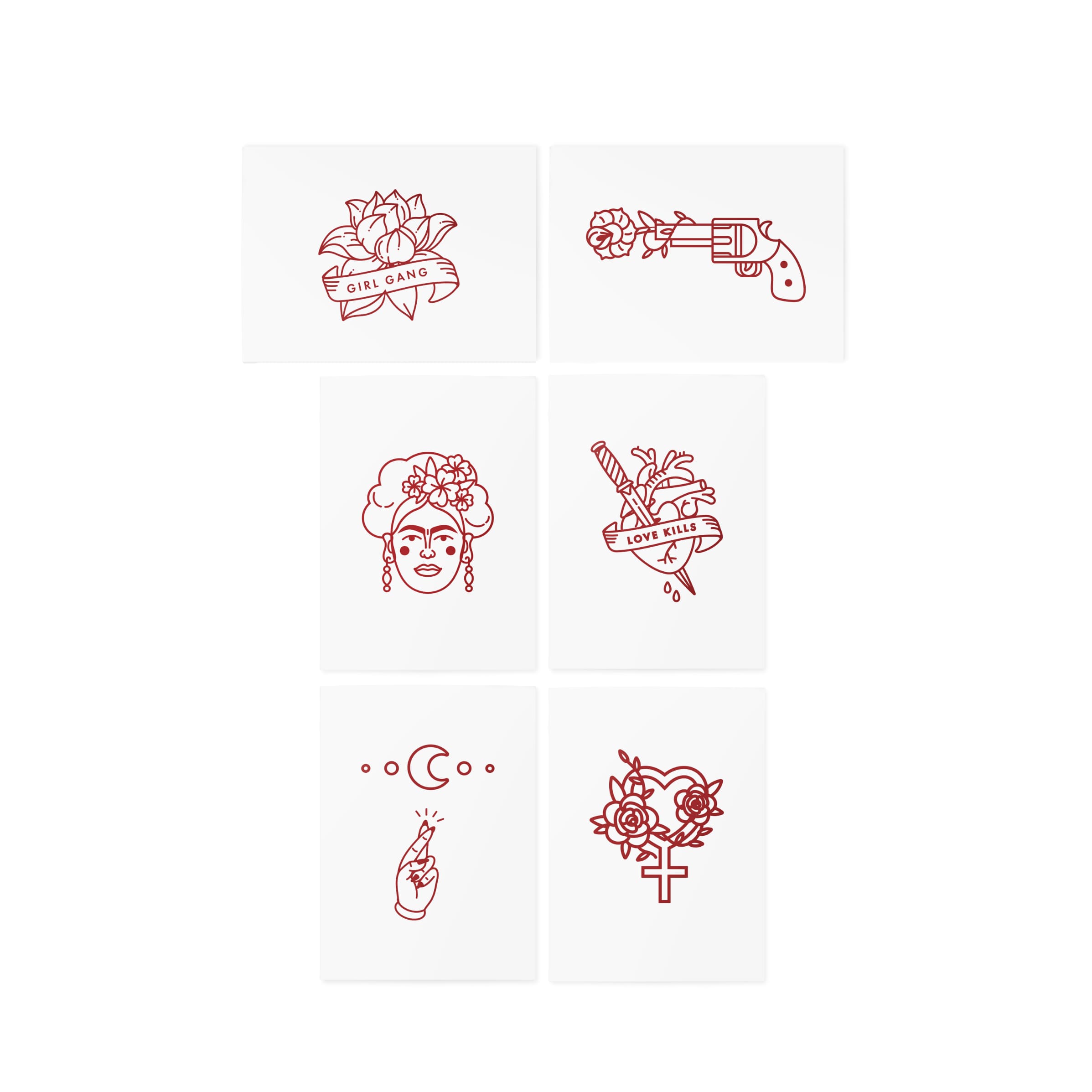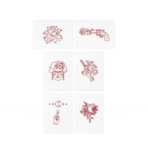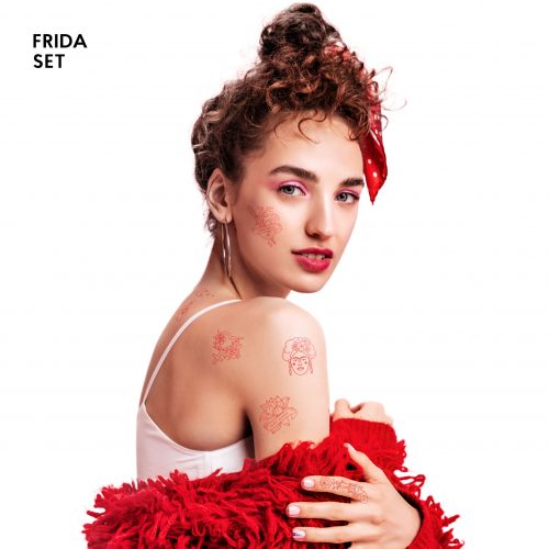 Passion and art are mixed in our bloody red temporary tattoo set inspired by Frida.